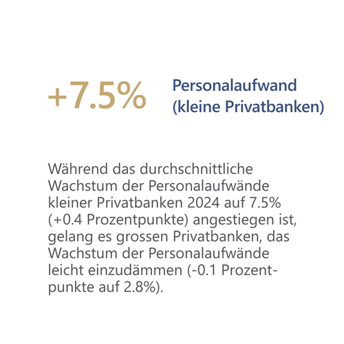 Kleine Privatbanken verfügen über weniger Möglichkeiten, ihre Kostenbasis zu skalieren. Vor dem Hintergrund des anhaltenden Kostenwachstums und der Rückkehr zu einem Tiefzinsumfeld rückt die Kosteneffizienz noch stärker in den Fokus. Sollte die wachsende Kostenbasis nachhaltig nicht in höhere Erträge überführt werden können, droht eine Beschleunigung der Konsolidierung bei kleinen Schweizer Privatbanken.